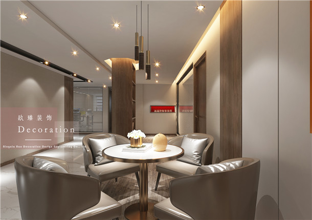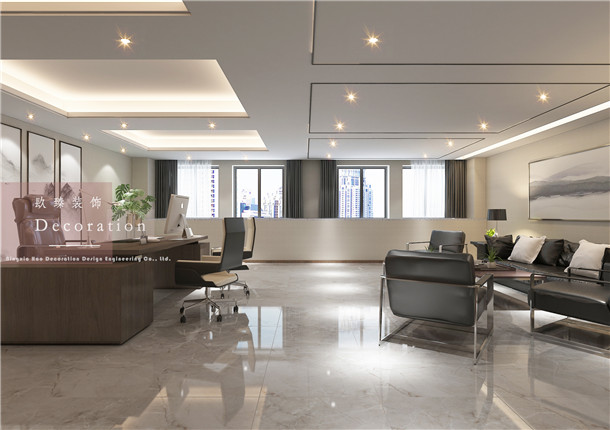 办公室装修,环境色调干净明亮,灯光布置合理,有充足的光线。这也是办公室的功能要求所决定的。在装饰中的色调使人身心放松,给人一种洁净之感,同时明快的色调也可在白天增加室内的采光度。