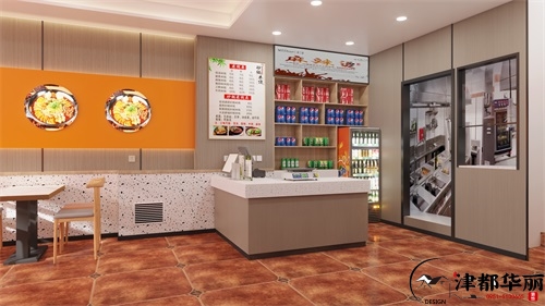 本次分享的是银川餐厅装修设计案例,得益于“高频食用、食材丰富多样”的品类优势,如今餐厅已成为热门的小吃快餐品类之一,一直以来都深受消费者喜爱。在消费升级的背景下,人们更愿意为场景消费而买单,从简单的味觉、口感的需求,升级到对饮食文化、环境消费的追求。餐厅装修,符合自身定位、突出品牌特色和文化才更好,而不是一味着追求奢华与。色彩搭配是餐厅环境氛围的重要因素,不同色彩对人的心里和行为产生不同的影响。橙色有激励的效果,尤其快餐,在空间气氛设计上,使用暖色调搭配,有利于提高翻台率。本案餐厅设计以巧、新、特取胜,在原有基础上,通过一些细节来有效传达品牌的独特文化,独特的餐具、图文并茂的菜单等,都提高消费者欲望。
