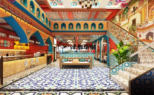 今天分享的是银川金巴依餐厅设计装修效果图鉴赏。看到这样的效果图,您是否有一种置身于丝绸之路的繁华梦境的感觉,餐厅的每一处设计细节都透露着设计师的匠心独运。主案设计师在保留新疆文化元素的同时,更融入了现代大气的风格,使得餐厅美观又大气。该餐厅的设计色彩比较丰富,装饰繁复,充满少数民族元素。餐厅内运用了大量的繁花绿植进行点缀,还有许多具有新疆特色的装饰品,如沙漠植物、手工挂毯等,点缀空间,增添自然与人文的气息,无不展示着它的独特魅力。这也是宁夏境内具有新疆独特地域特色的餐厅,敬请期待这家餐厅的落地效果吧!