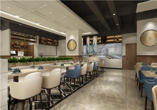 在本案涉及色彩搭配上,设计师注重整体效果,运用色彩对比,加强了视觉印象和就餐食欲效果,突出了重点展示部位,搭配相应的对比色彩。