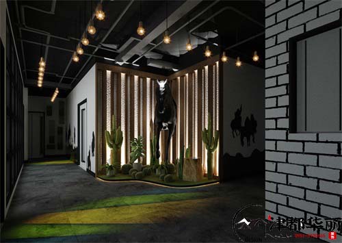 本案是蒙古餐厅装修设计项目,说起蒙古族,很多人就想到了那里的美食、美景以及风俗习惯,的确,蒙古族美食非常的有特色,能让人回味无穷,就像他们的风俗习惯一样,质朴独特。此次的餐厅设计理念就是打造一个典雅时尚,并且展现蒙古自然纯朴的独特风情,为了营造质朴的基础格调,地面、墙面用灰色系的瓷砖或者青砖装饰,搭配清新时尚的造型设计,既展现出了空间的时尚艺术,也能让我们感受到质朴带来的亲切感,空间随处可见的都是蒙古风情元素,非常丰富的绿植装饰,以及草原动物造型和背景,还原了蒙古草原的美好景象,让我们有种身临其境的真实感受。集合了现代的时尚,异域风情的自然豪放,欧式的精致浪漫以及自由发挥的复古文艺,融合不同风格元素的设计,让我们不断的收获惊喜。