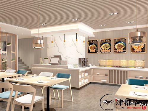 在本次案例中,设计师根据甲方的意愿,想要打造一个时尚大气,温馨舒适的就餐环境,一个符合都市白领的时尚餐厅。首先是门头的设计,橘色和白色搭配设计,使门头显得更加时尚靓丽,能够快速的吸引人的视线。在餐厅内部的设计上,主要还是以简约时尚为主,其次是空间功能布局的设计,因为面馆的人流量比较集中,中午和晚上是高峰期,所以在设计餐桌时,大多以四人桌和两人桌为主,增加餐厅的容客量。店内的整体氛围静而雅致,在喧闹的都市里,寻找一个安静舒适、环境优美的就餐环境,享受属于自己的美食时光,这也是我们在繁忙生活中的一丝安逸的追求。
