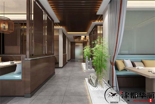 以下案例是一个餐厅的装修设计,整体设计风格简约、时尚、唯美。前厅梅花造型的吊顶,给我们的映像就是唯美且有意境,进入大厅缥缈淡雅的木质隔断将空间分隔的雅静浪漫,让就餐环境更加的优雅,提升了空间的整体格调。家具的选择上更加的时尚且舒适,让顾客对整体的空间氛围有归属感,在身体和心灵上同时感受到舒适和放松。灯光设计上光线柔和,将空间氛围衬托的更加温馨浪漫。此次的设计是将中式的唯美浪漫和现代的时尚香相融合,让我们在感受不同的风格元素的同时又体验它们相互融合带给我们的惊喜。