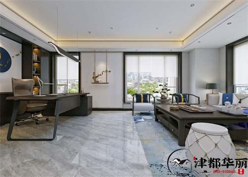 现代办公的装修一般追求简约时尚,便捷高效,给办公者提供一个温馨舒适的办公场所。所以在这次的办公室设计中,整体简约而有内涵,简单的设计会让整体空间显得干净整洁。公司形象墙的设计简约时尚,L型的设计合理的分隔了空间,让空间更加的有层次性,灯光和绿植的点缀让形象墙更加的生动丰富,给我们的印象就是时尚且欣欣向荣。办公区的吊顶造型简单而时尚,搭配零星点点的灯光,颇有艺术感,整齐简约的办公桌椅,放上几盆绿植,这里被装饰的刚刚好,宽敞舒适,也将空间合理的利用完整。领导办公室的设计宽敞气派,深色木质墙柜颜色突出,但又和整体空间融为一体,突出了空间的品质和大气。