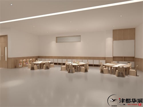 今天分享的是幼儿园装修设计案例,原木风格的幼儿园设计通过柔和的色彩、木材的使用让幼儿能够拥有一种亲切感,这种反应是对自然环境最为纯粹和自然的表达和展现。浅色系的感觉能够治愈心灵,幼儿园使用这样的风格,能营造出如家一般的温馨,使得幼儿更适应幼儿园的环境,减少最开始入园的分离焦虑。对于儿童而言,空间的留白非常重要。原木风的设计能够达到这样一个效果,创造一个简单的空间,还给孩子更多的想象。与其他亮丽多彩的色调相比,素雅、禅意的原木风气质上更趋于柔和舒缓,使人更亲近大自然,更能彰显出一种返璞归真的感觉。