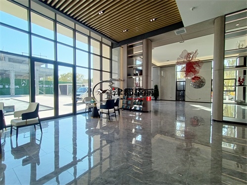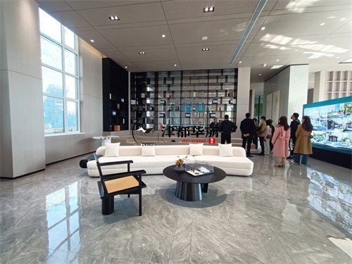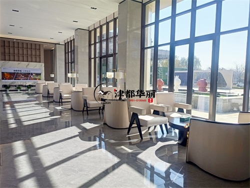 今天分享的是银川熙玉园售楼部大厅装修设计项目实景图分享。这间售楼部大厅整体设计装修风格为现代轻奢风,符合当下流行的设计趋势。大面积落地窗引入充足自然光线,让空间更显通透开阔,既满足了售楼部展示空间的采光需求,又通过光影变化增强了空间的动态美感。背景墙的格子式装饰柜,将实用功能与装饰性结合,在保持风格统一的前提下,实现了售楼部的信息传递功能,体现了现代轻奢风“功能与美学共生”的设计逻辑。地砖采用的是大面积的灰色大理石瓷砖,美观大气的同时也方便清理,同时还延伸了空间视觉效果。银川装修公司津都华丽会根据工装类型,给客户量身打造出售楼部大厅设计装修方案。