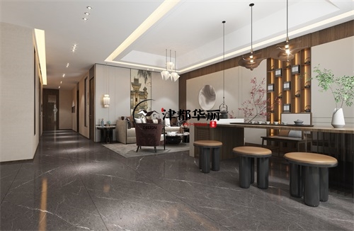随着人们健康意识提高、对生活质量的追求,“足浴养生”成为了人们关注的热点。设计不仅要提供怡人的环境,也肩负了打开市场局面、打响品牌的使命。今天分享的是足浴店设计装修案例,中式装修足浴店设计装修面色彩明暗对比强烈,其中青石阶、抱鼓石、影壁浮雕、仿古吊灯宁静优雅,花格实木格栅吊顶贵气之余又染着自然的清新灵秀,在超凡脱俗之处,给人以的美感享受。副厅呈现出明净空灵的清新美,利落的设计手法将传统的中正、稳重、经典、高雅之韵,演绎成一种超乎于形的意境之美。包间的设计,着重打造明厅暗室中的“暗”,营造出放松,安全的休息氛围。足浴房间设计高贵时尚又赋有诗情画意,用于娱乐之用,背景墙一副浩瀚壮阔的水墨梅花挂画将悠闲养性、怡然自得的心境达超然之致。设计运用别出心裁创造力,将整体景象的做到熟悉中有新意,协调中有变化,平淡中有味道的绝唱。